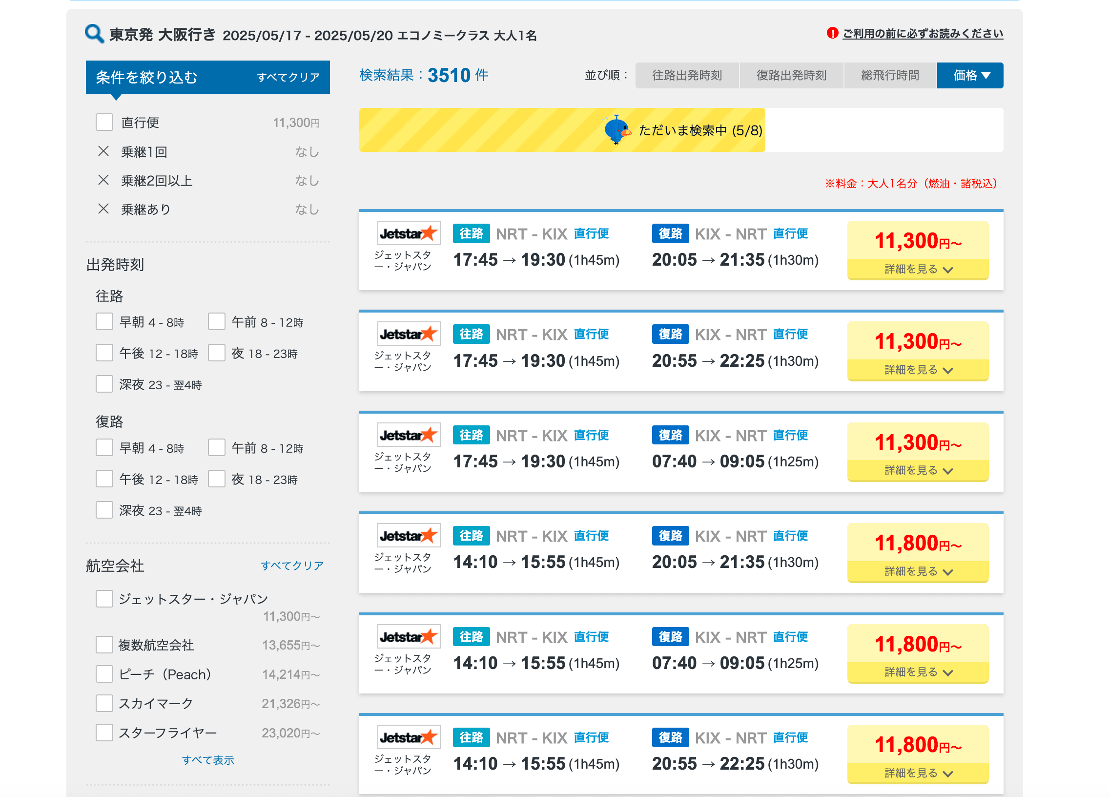 - Go to the destination page, for example: Flights from Tokyo to Osaka.