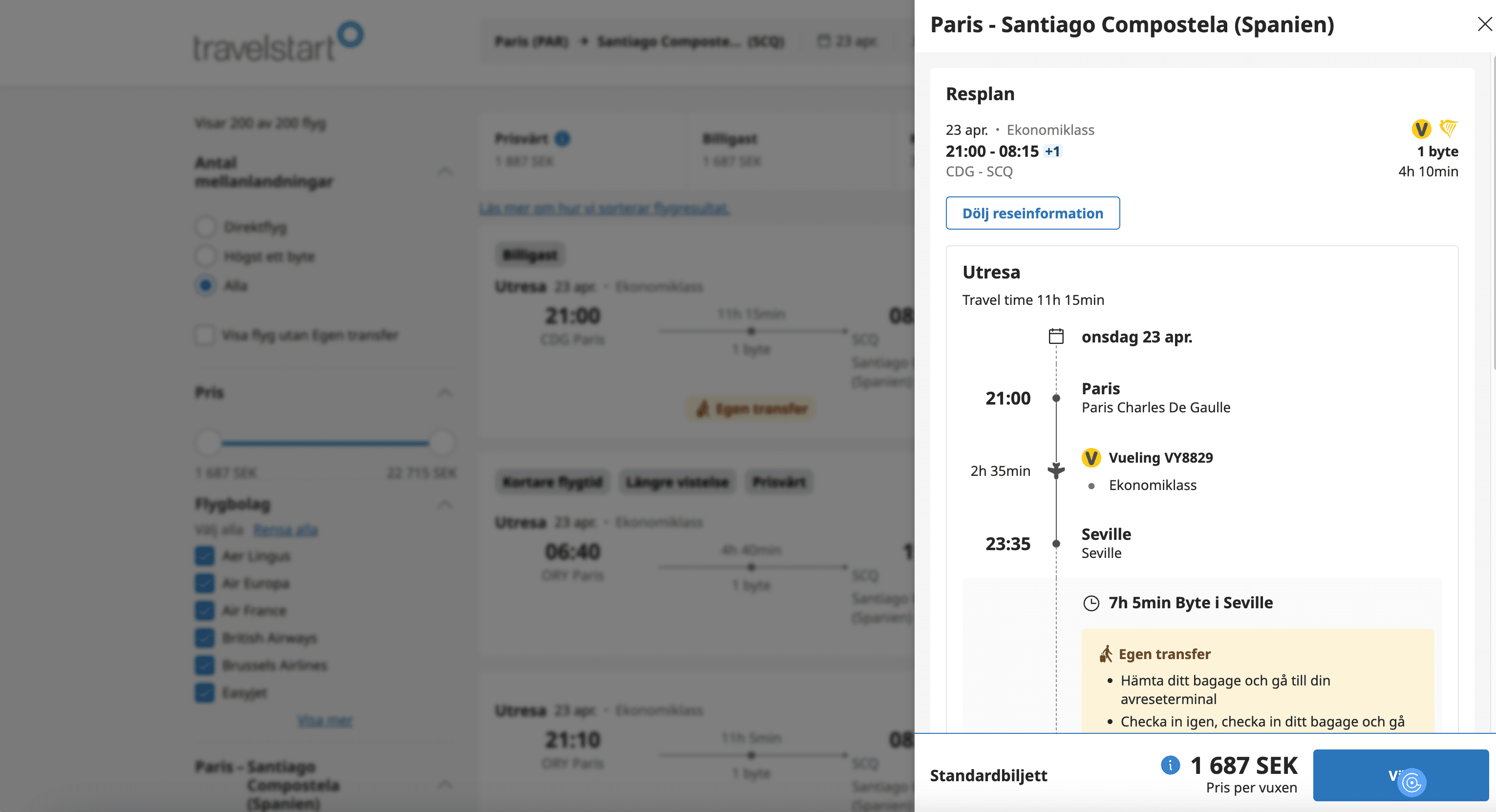 - Go to the Travelstart Flights Search Result Page.
