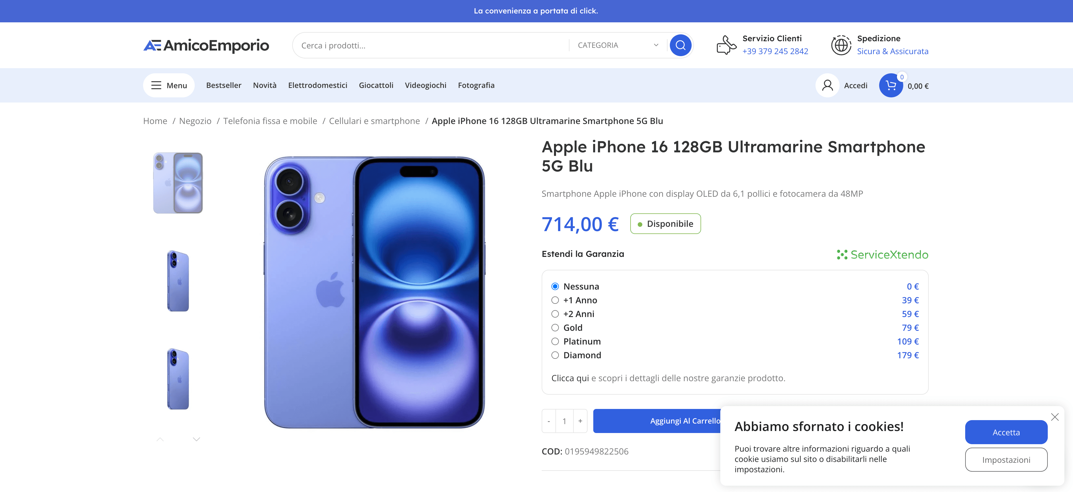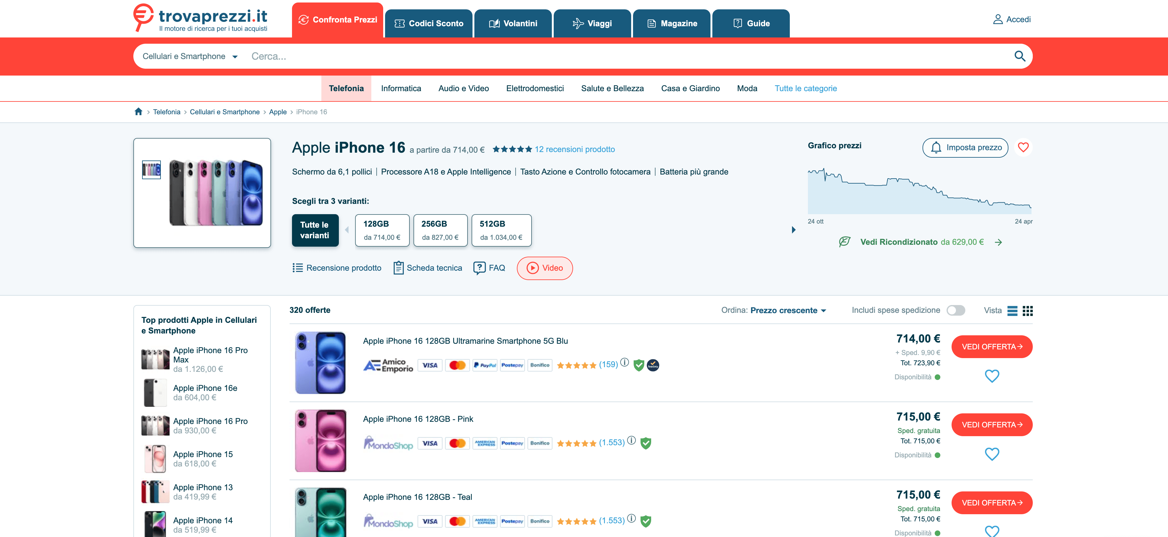 - Go to the destination page, for example: Trovaprezzi Product Details for Apple iPhone 16.