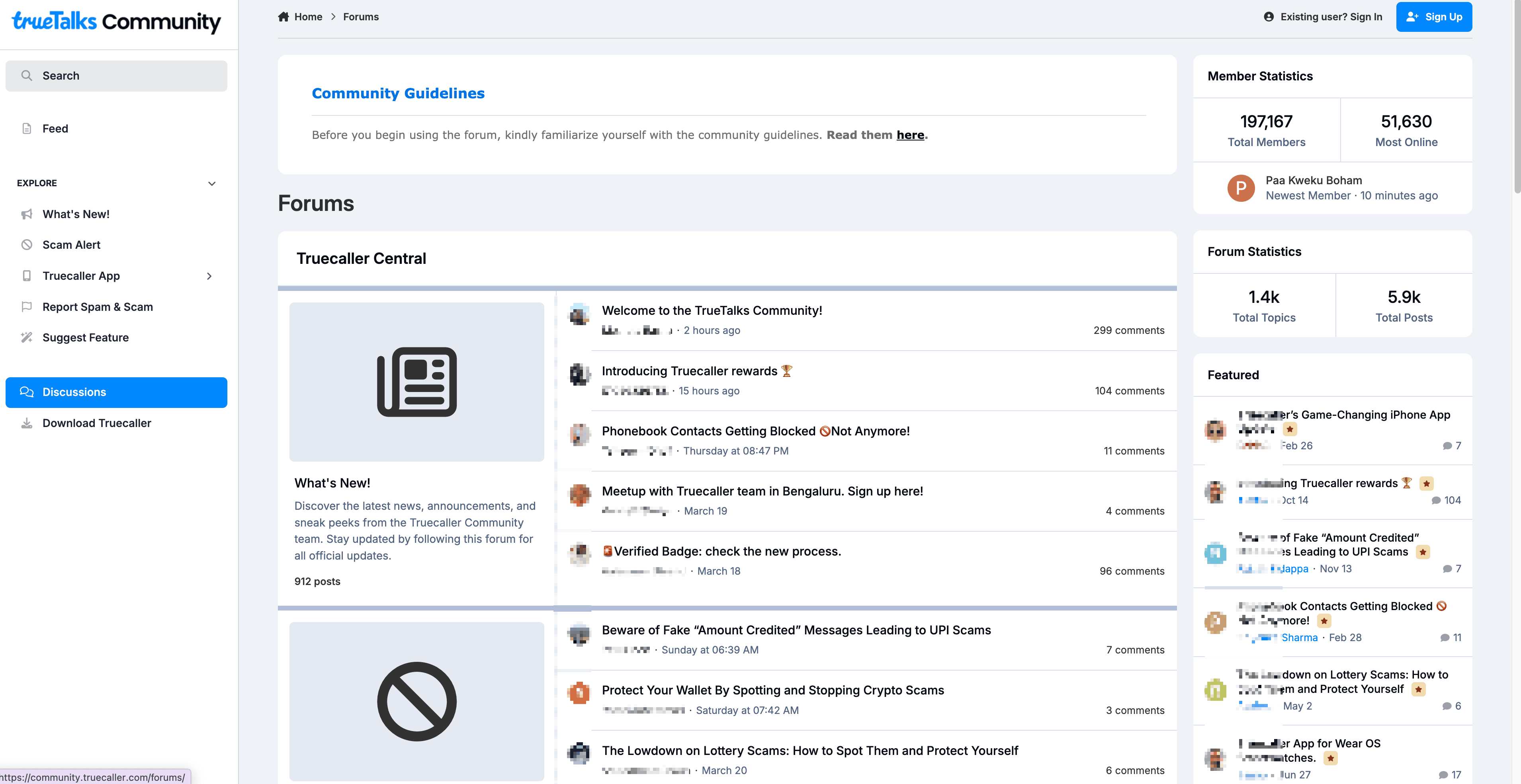 - Go to the destination page, for example: Truecaller Forum Discussions.