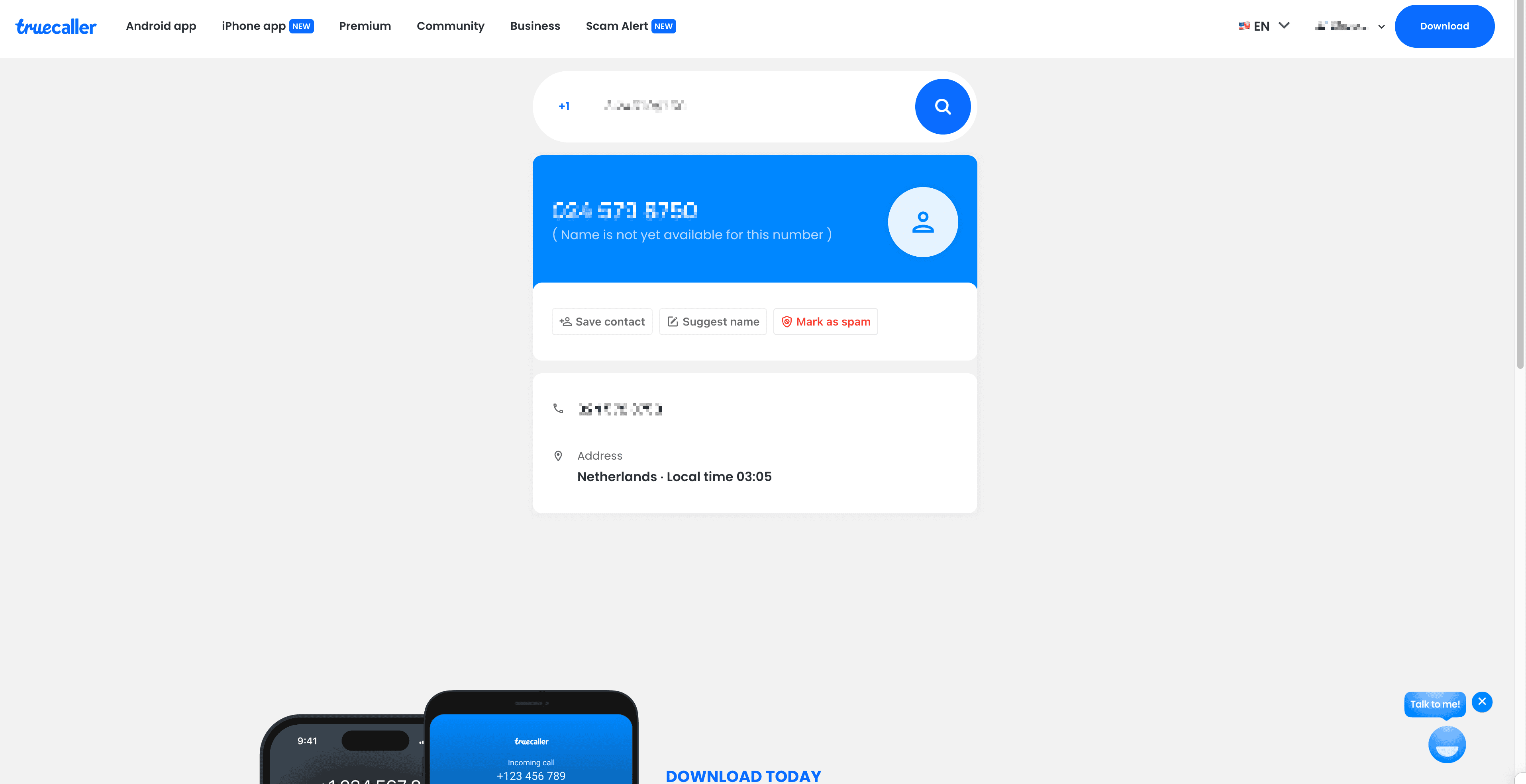 - Go to the destination page, for example: Truecaller Reverse Phone Lookup.