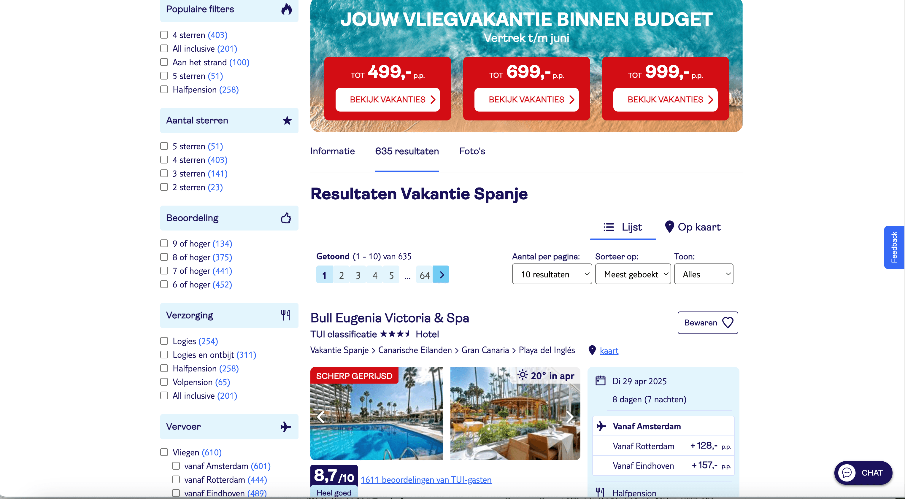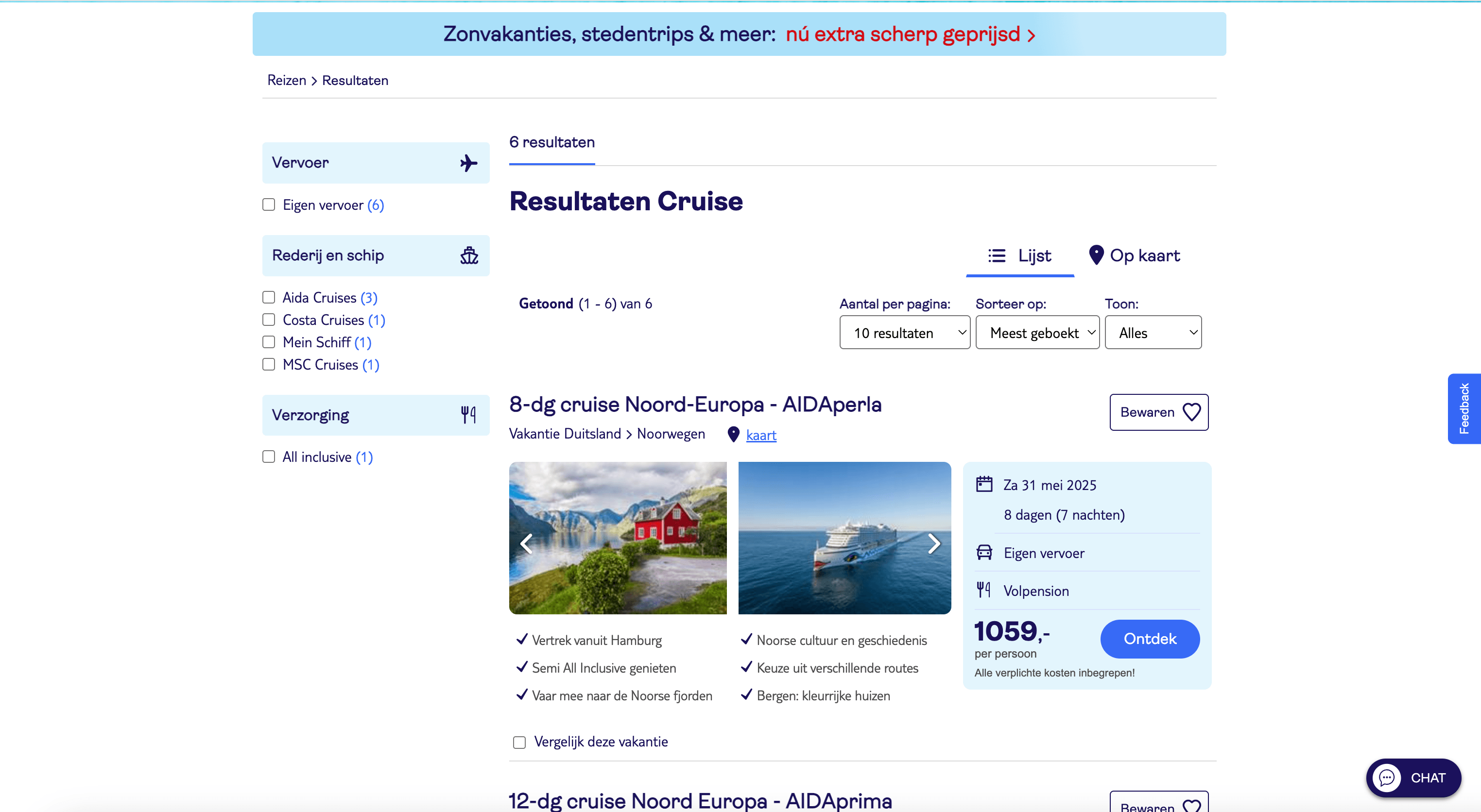 - Go to the destination page, for example: TUI.nl Cruises Search Result.