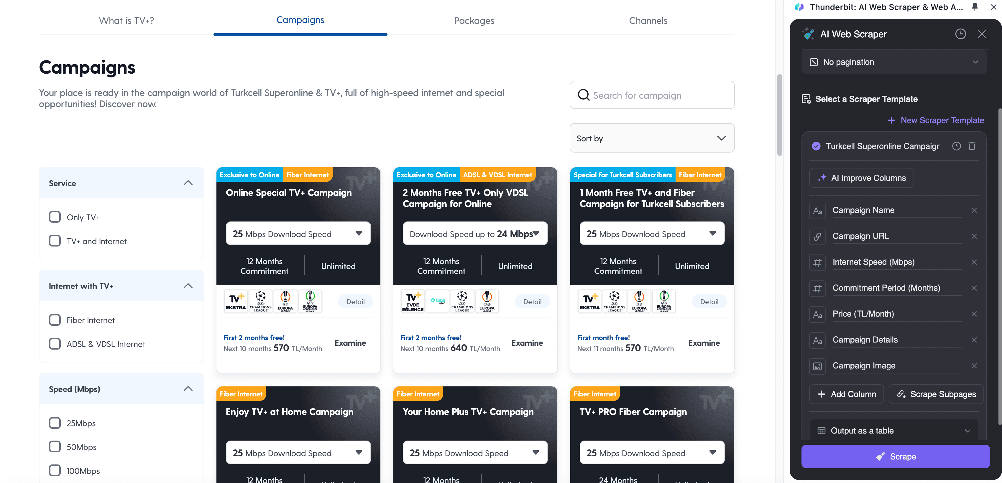 Scraping Turkcell's product and campaign pages can provide valuable insights for various purposes: