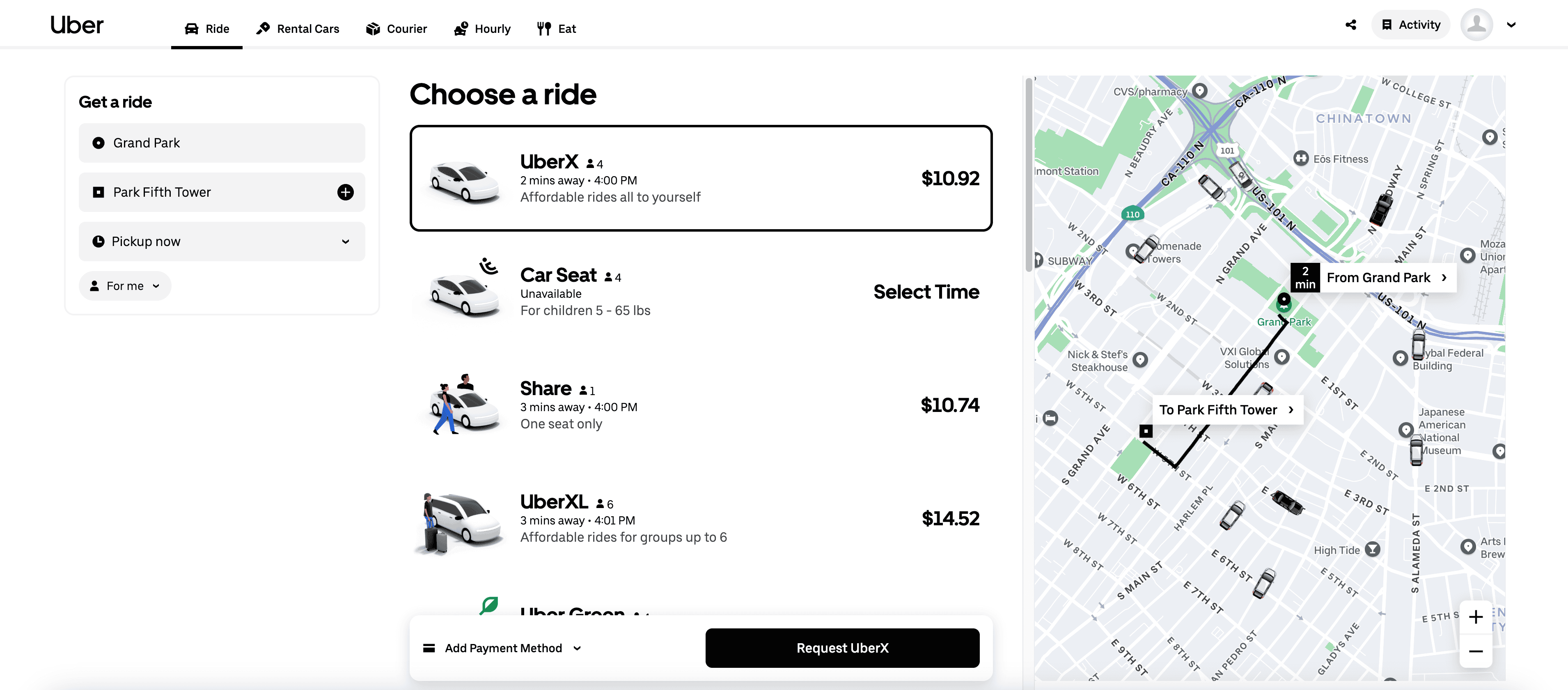 - Navigate to the Ride or Rental Car Search Result Page: Go to the Uber page you want to scrape.
