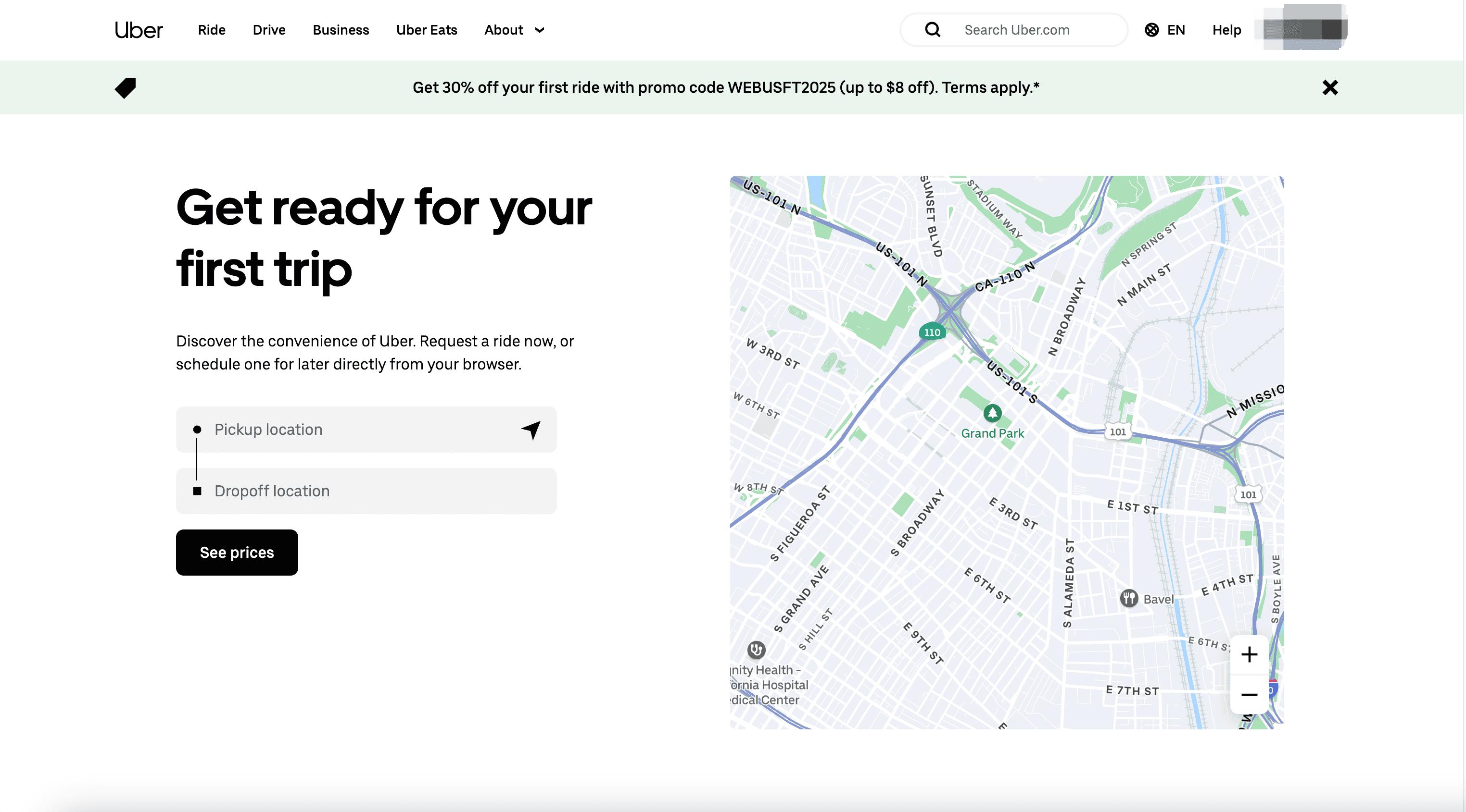 - Go to the destination page, for example: Uber Ride Search Result Page.