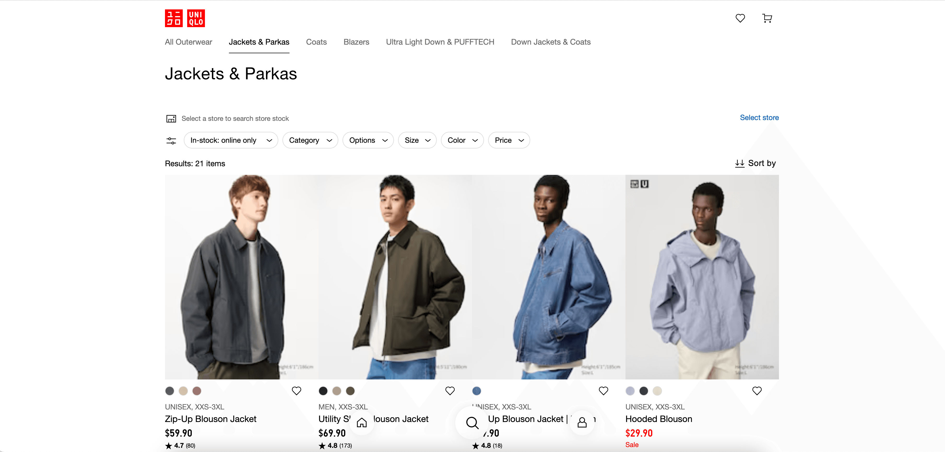 - Go to the UNIQLO product listing page.
