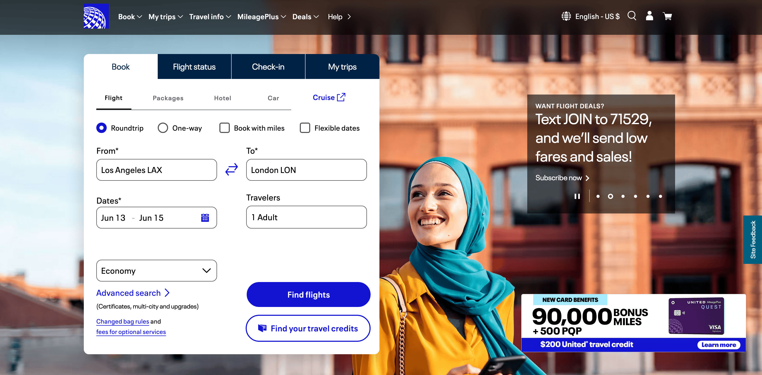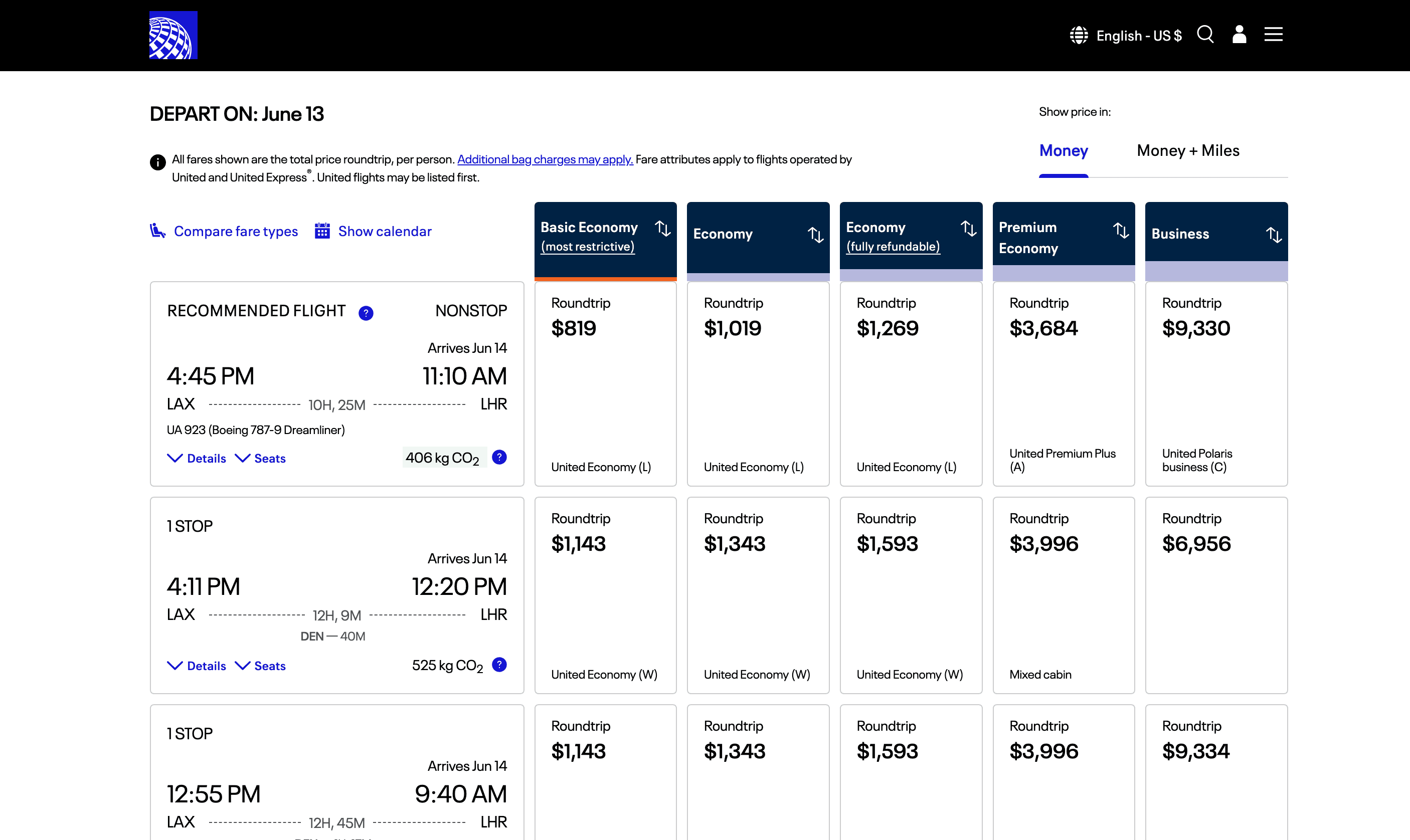 - Go to the destination page, for example: United Airlines Flight Search Result.