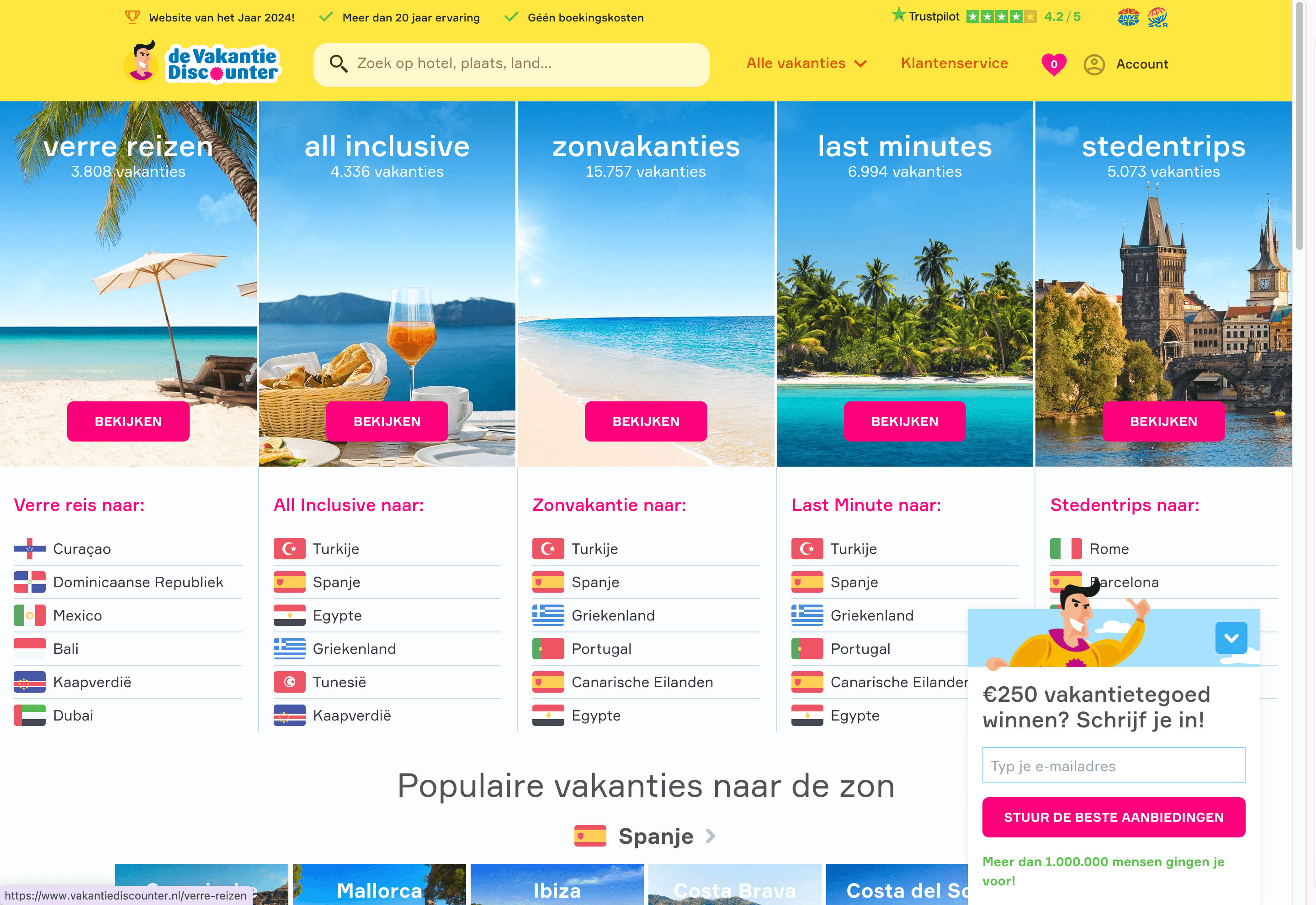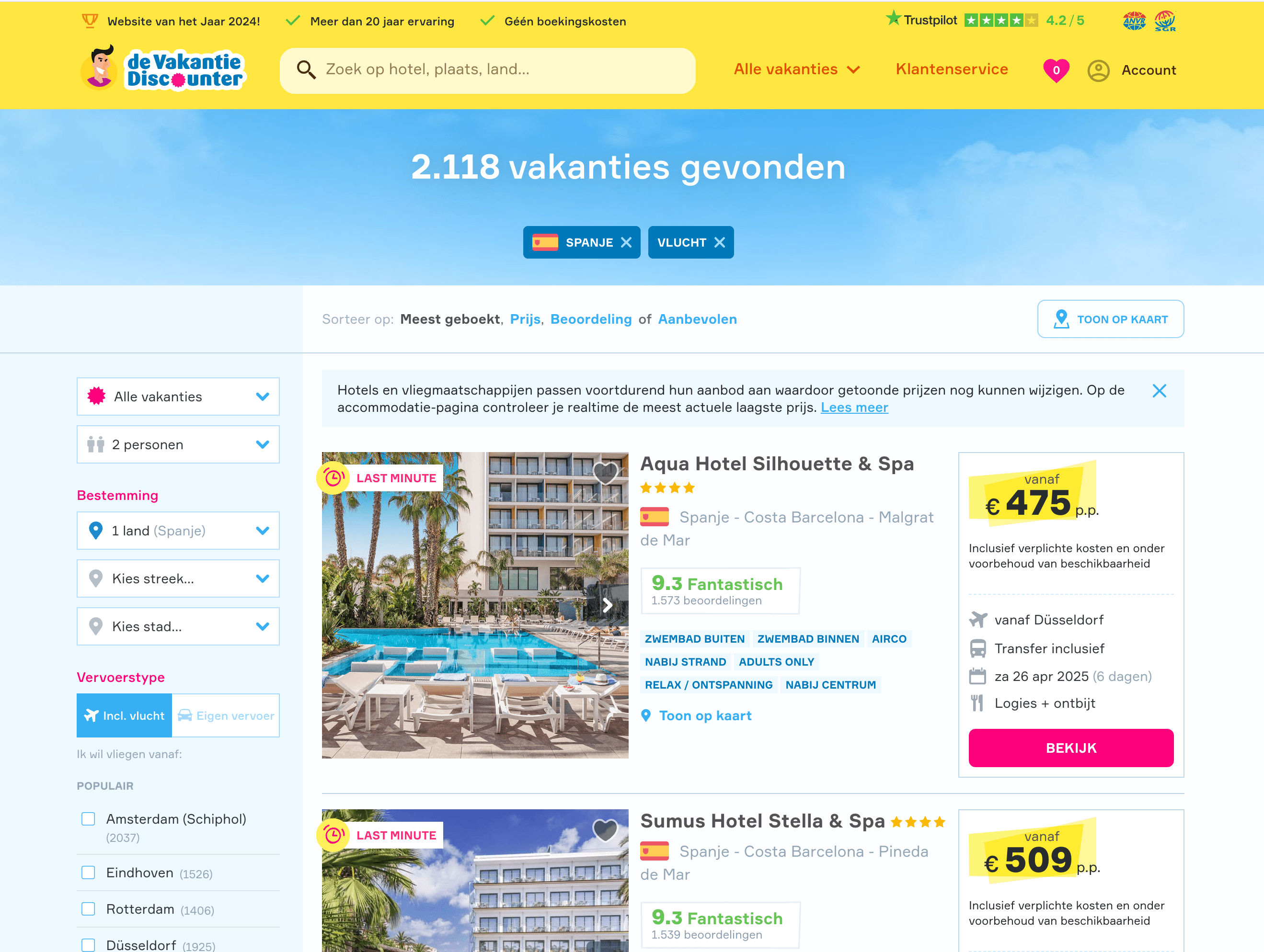 - Go to the VakantieDiscounter hotel search results page.