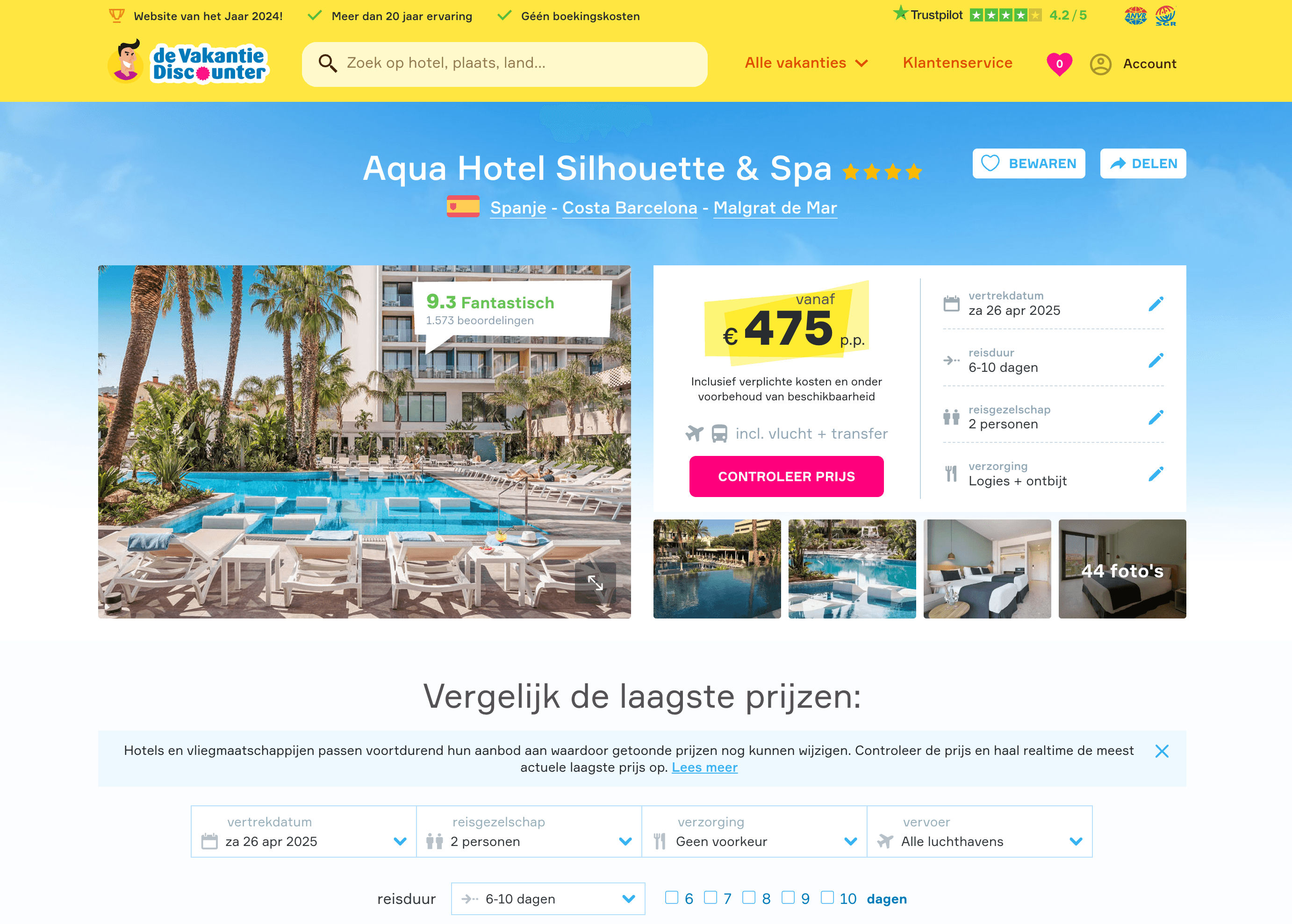 - Navigate to VakantieDiscounter Search or Hotel Details Page: Go to the search results or a hotel details page.