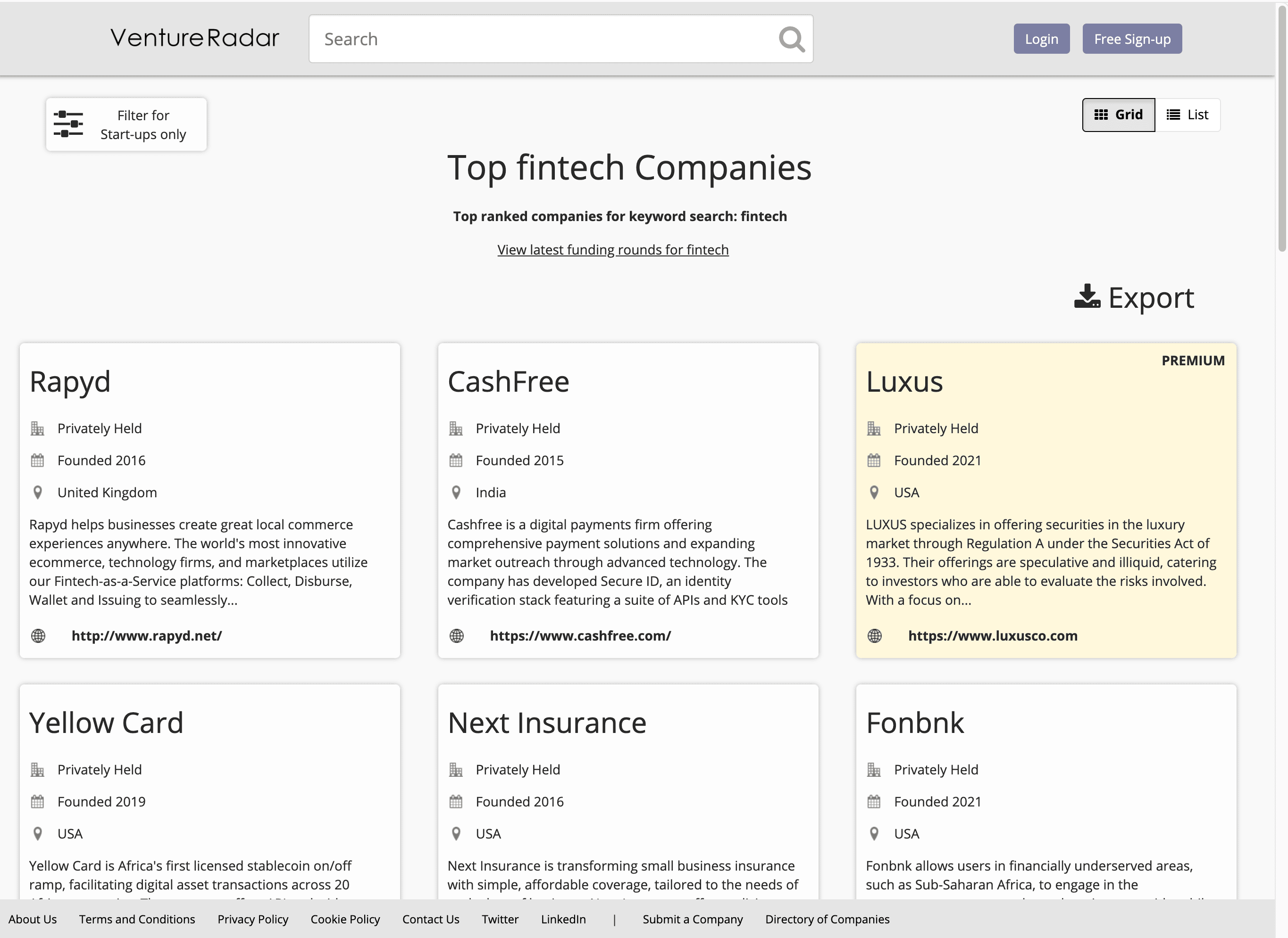 - Navigate to the Funding Deals or Top Companies Page: Go to the VentureRadar page you want to scrape.