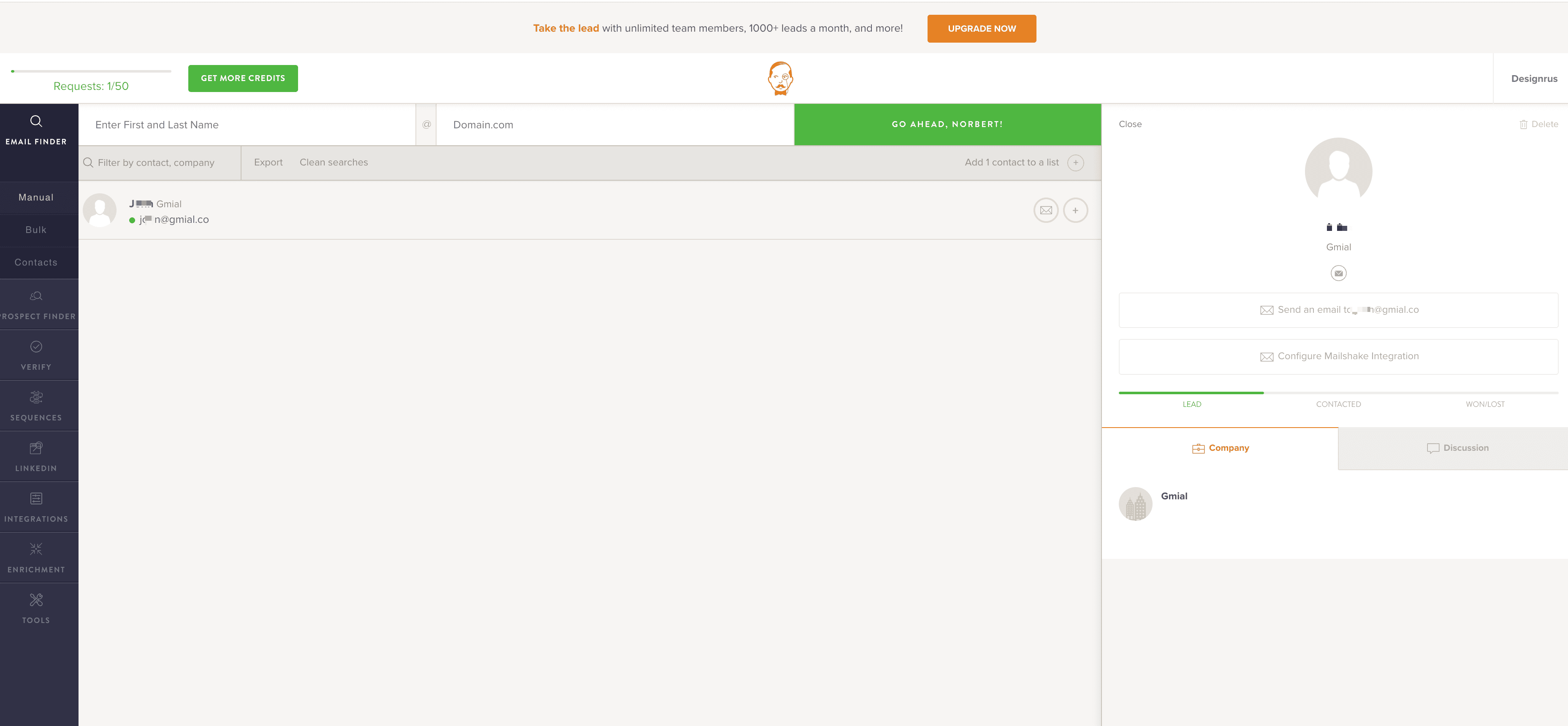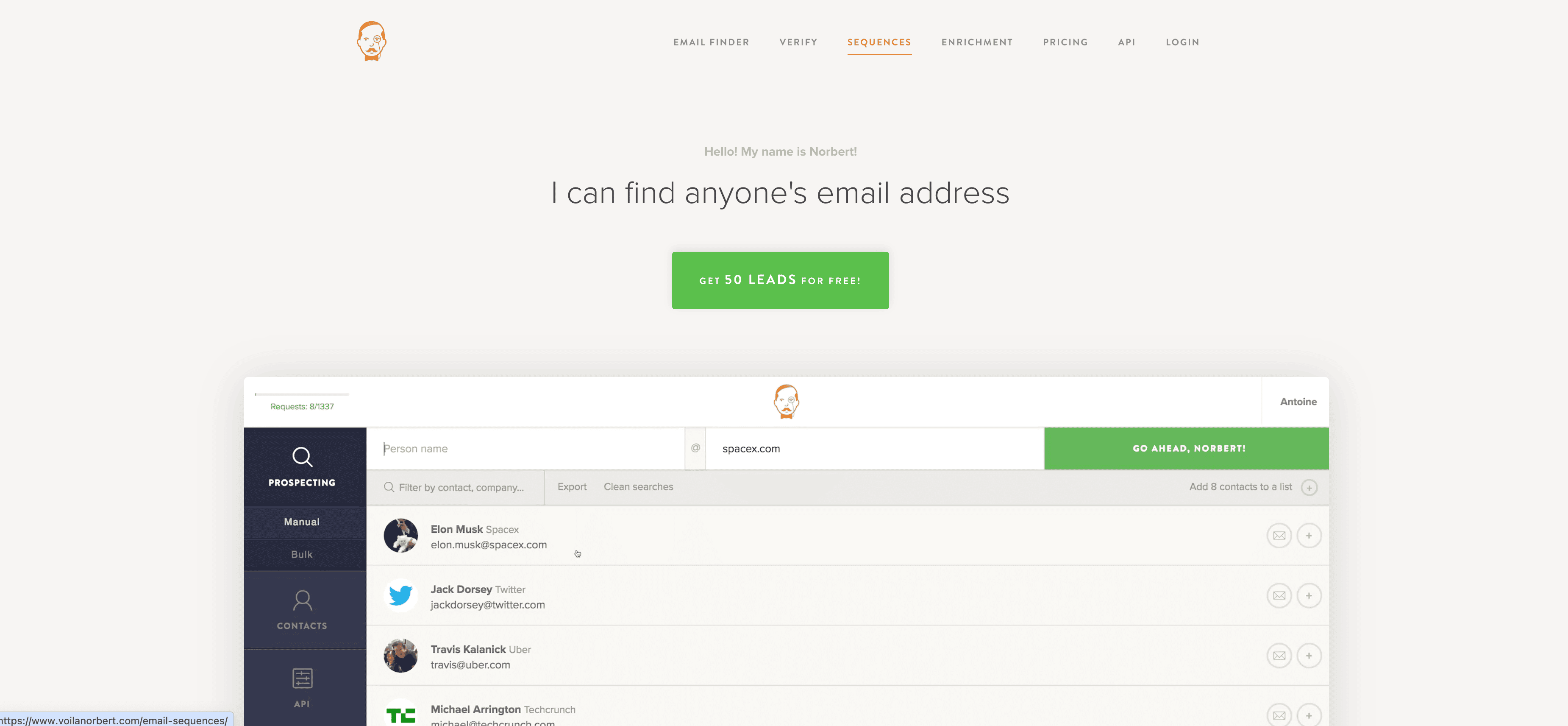 - Go to the destination page, for example: VoilaNorbert Manual Prospecting Page.
