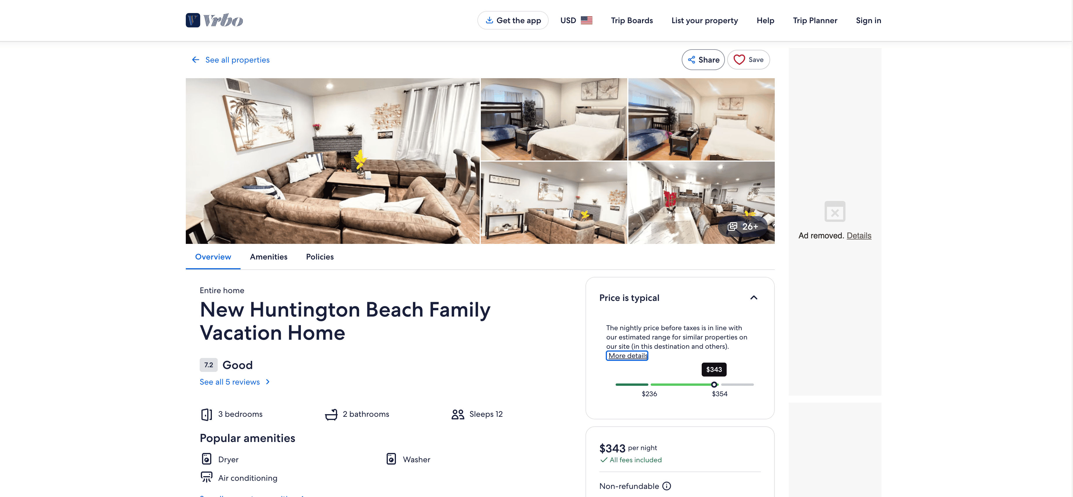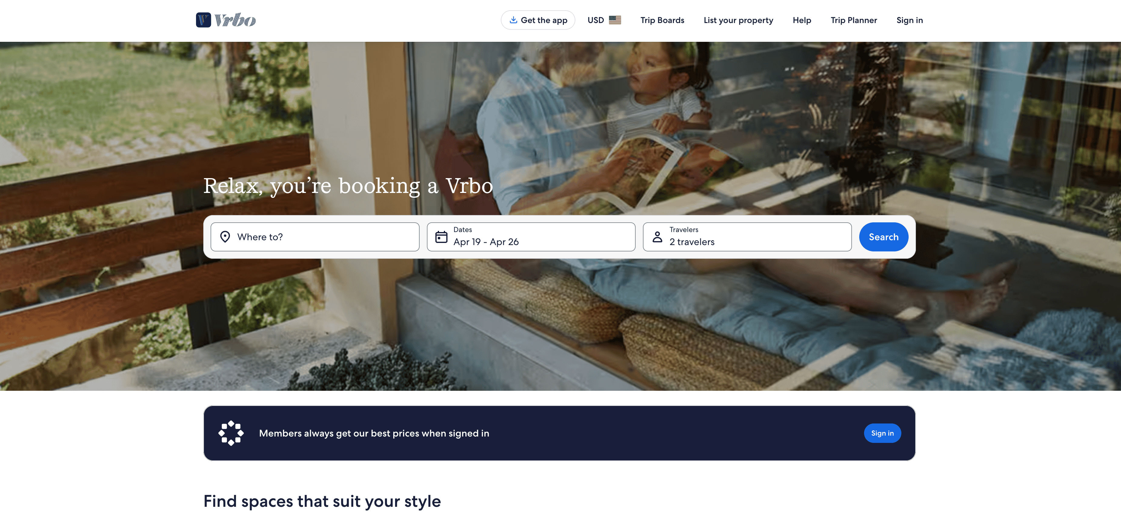 - Go to the destination page, for example: VRBO Hotel Details Page.