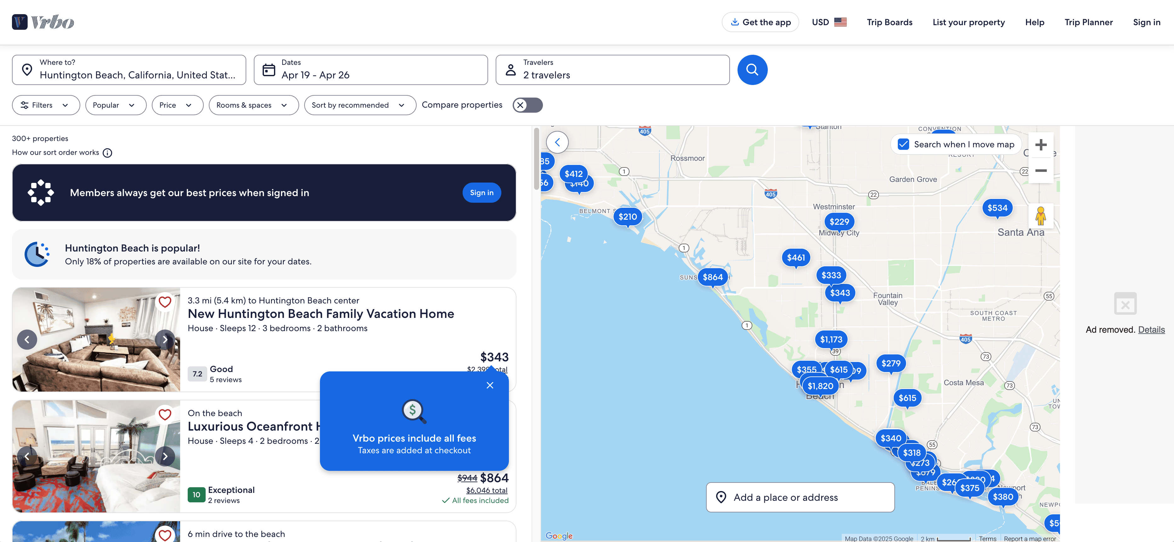 - Go to the destination page, for example: VRBO Hotel Search Result Page.