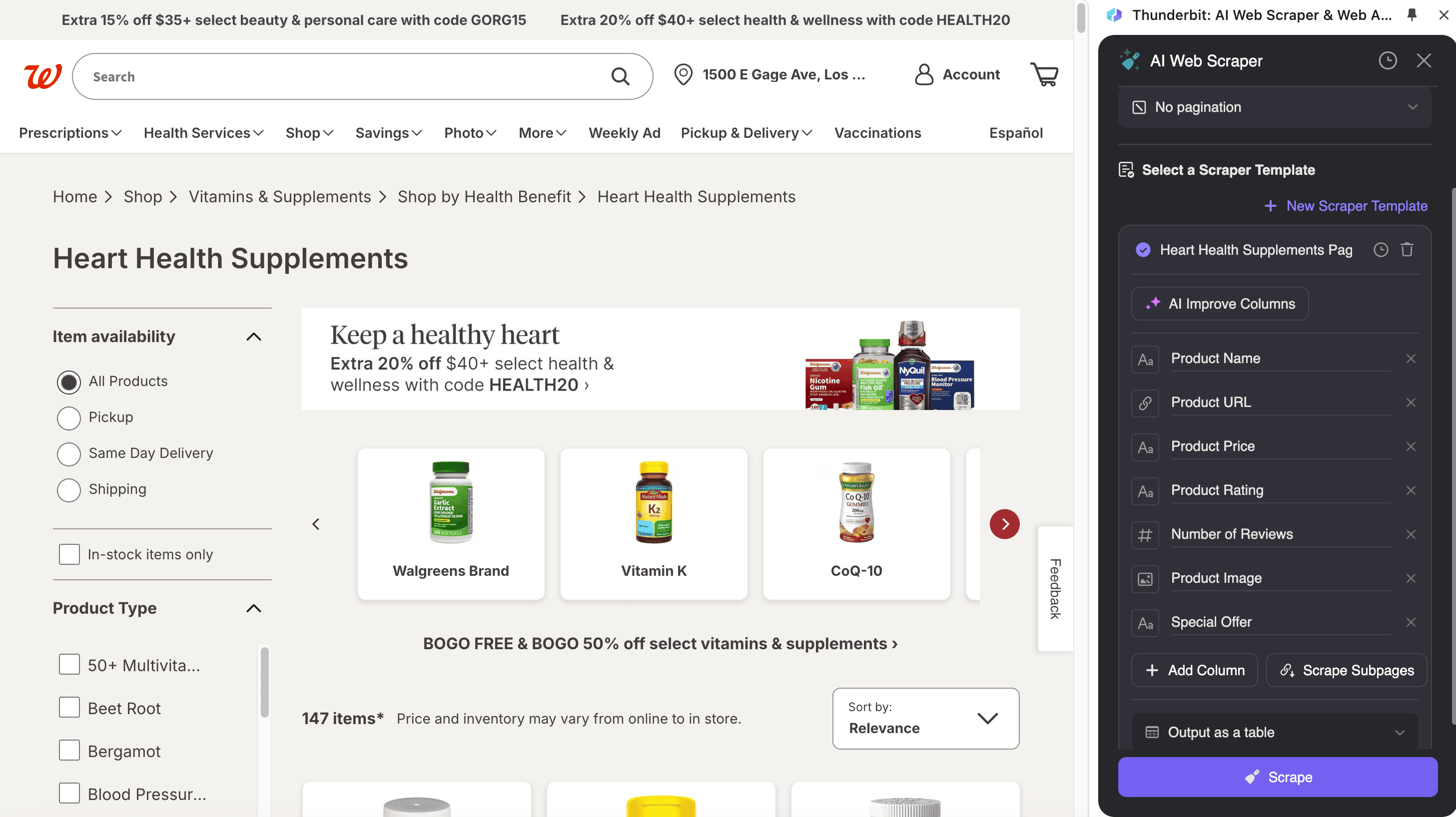 1. Scrape Walgreens Product Listing Page