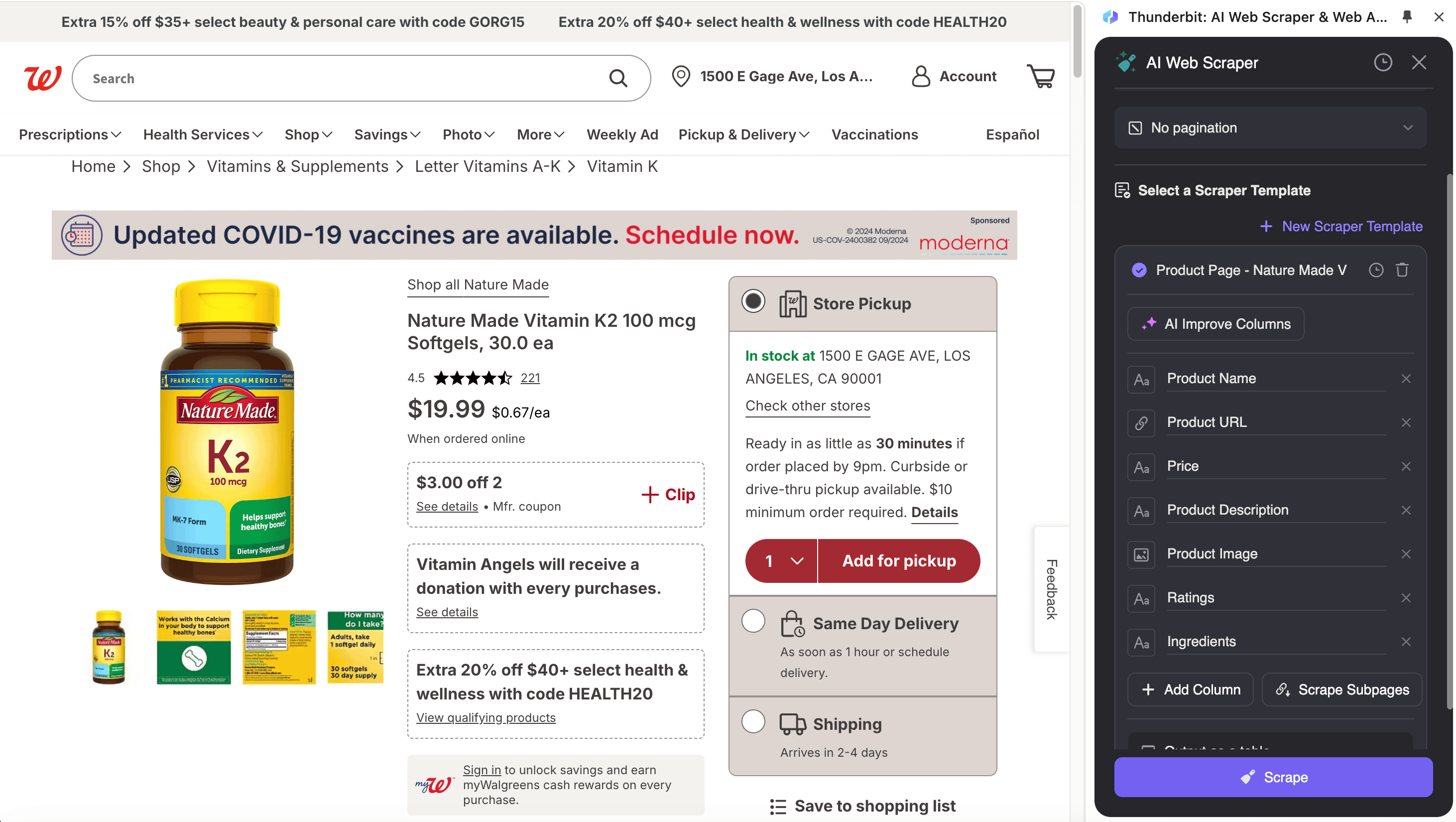 - Navigate to the Product Listing or SKU Page: Go to the Walgreens page you want to scrape.