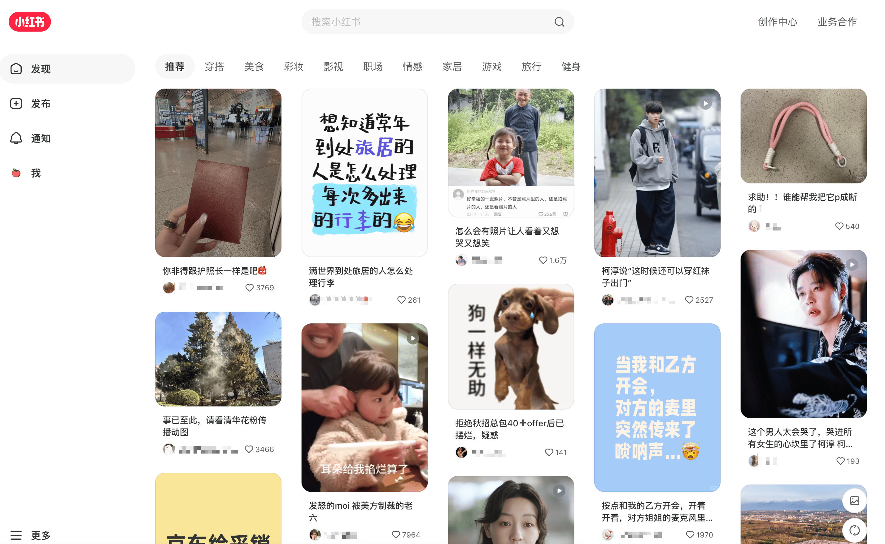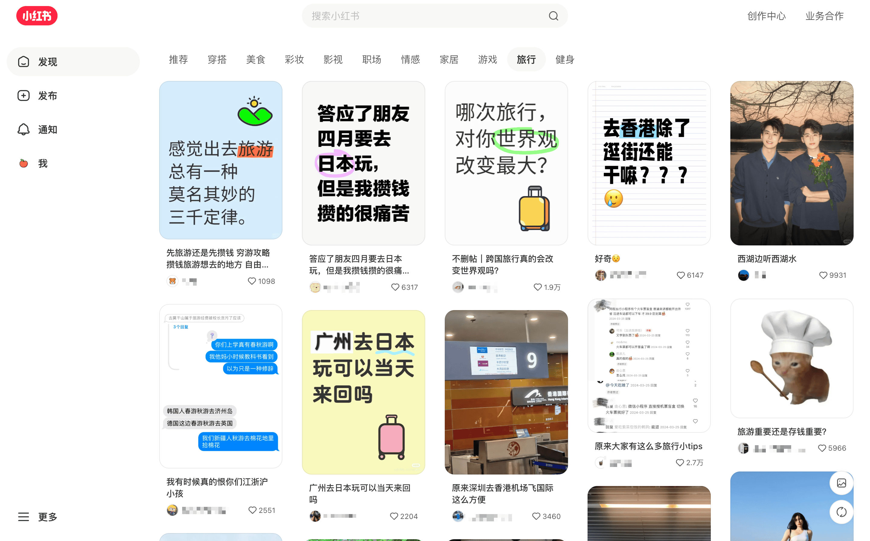 - Go to the destination page, for example: Xiaohongshu Travel Feed.