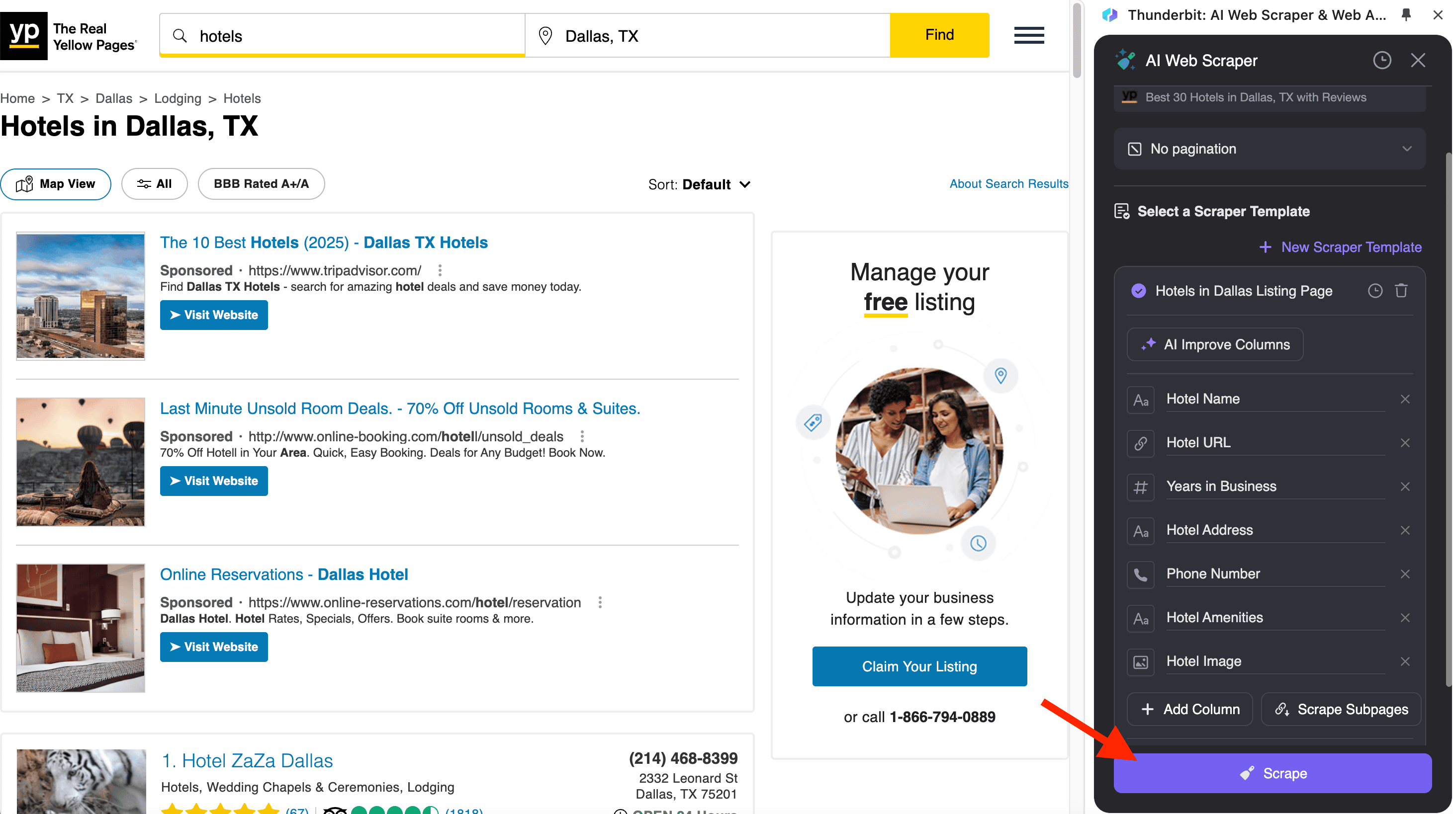 - Navigate to Yellow Pages Listings or Search Results: Go to the specific Yellow Pages page you want to scrape.