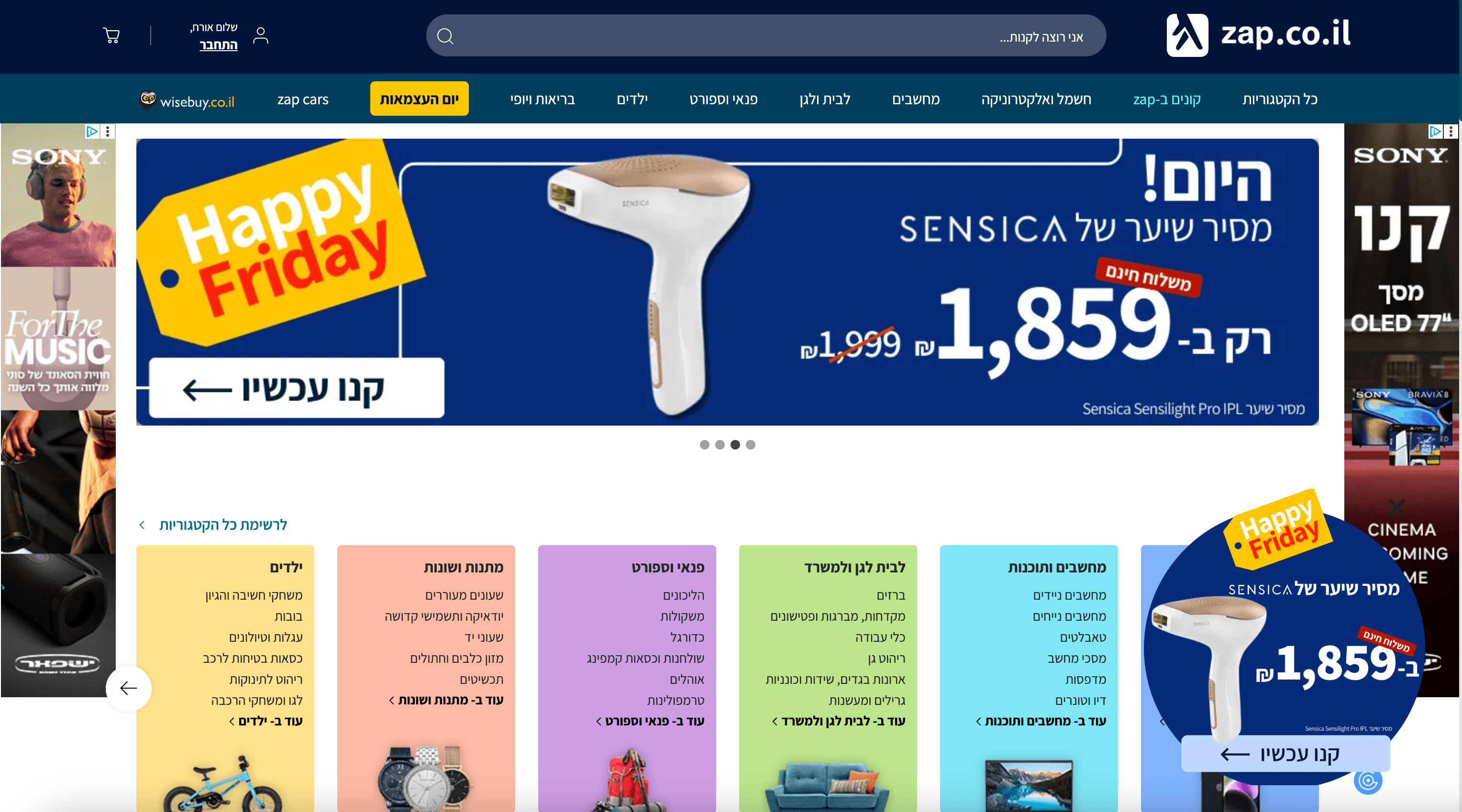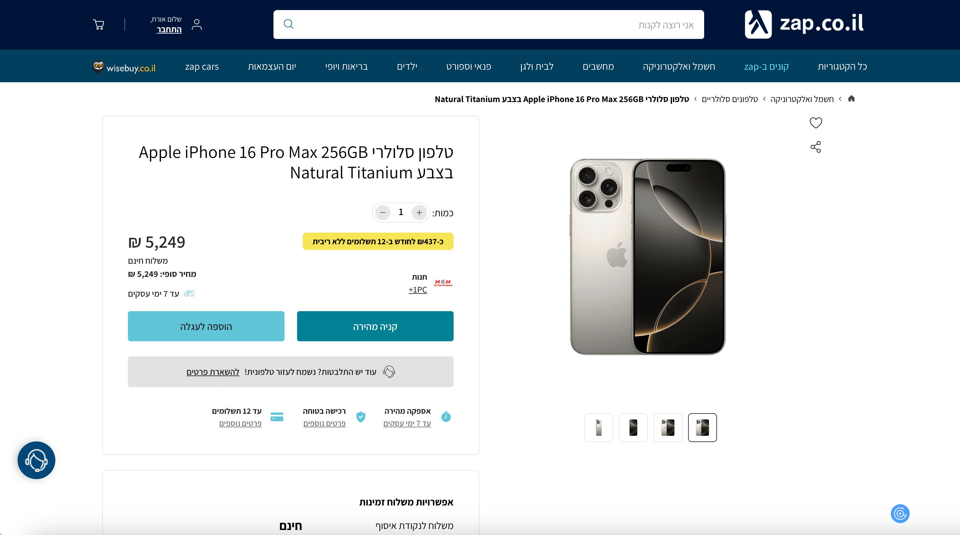 - Go to the destination page, for example: zap.co.il SKU details page.