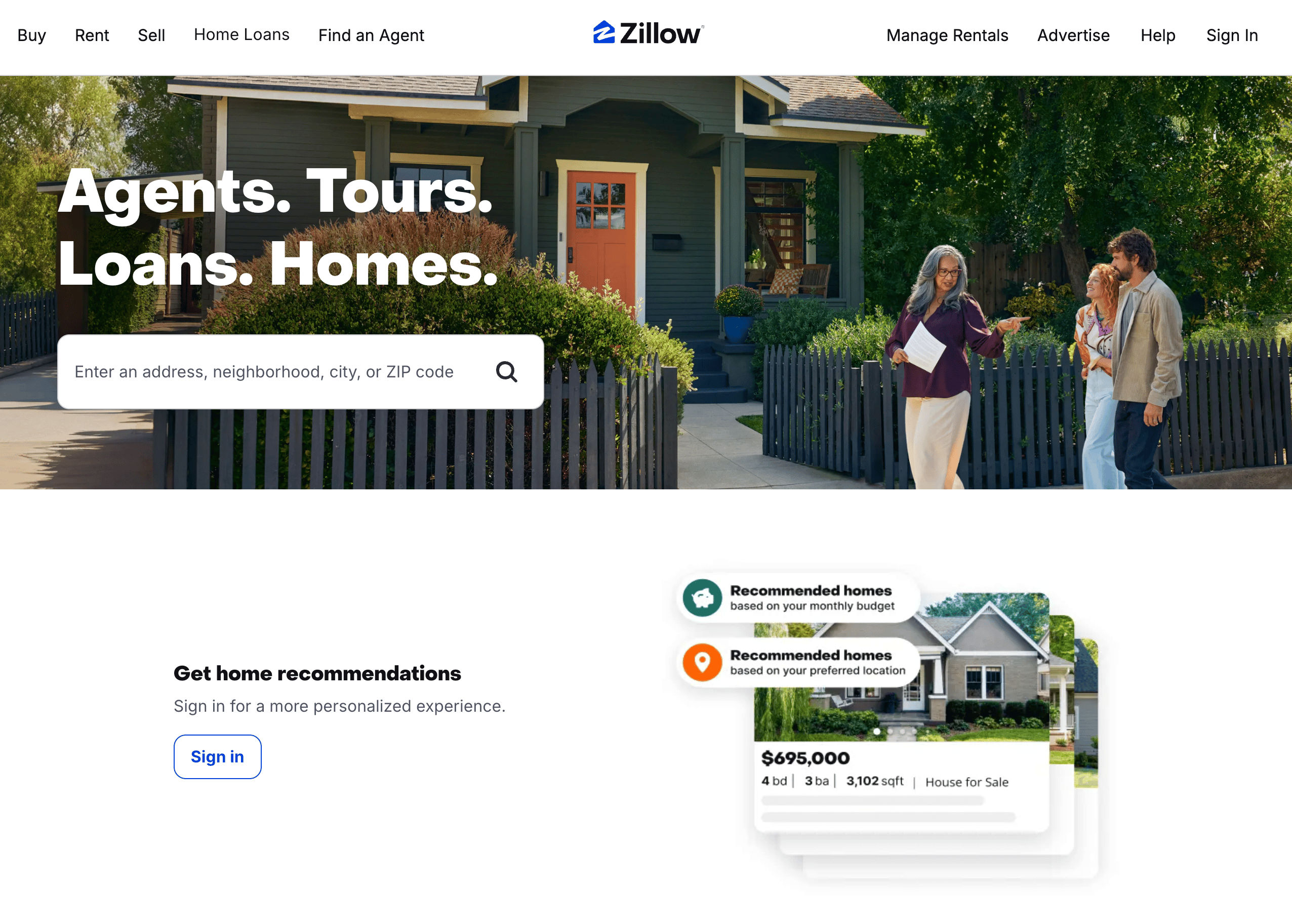 - Go to the destination page, for example: Zillow Rental Listings.