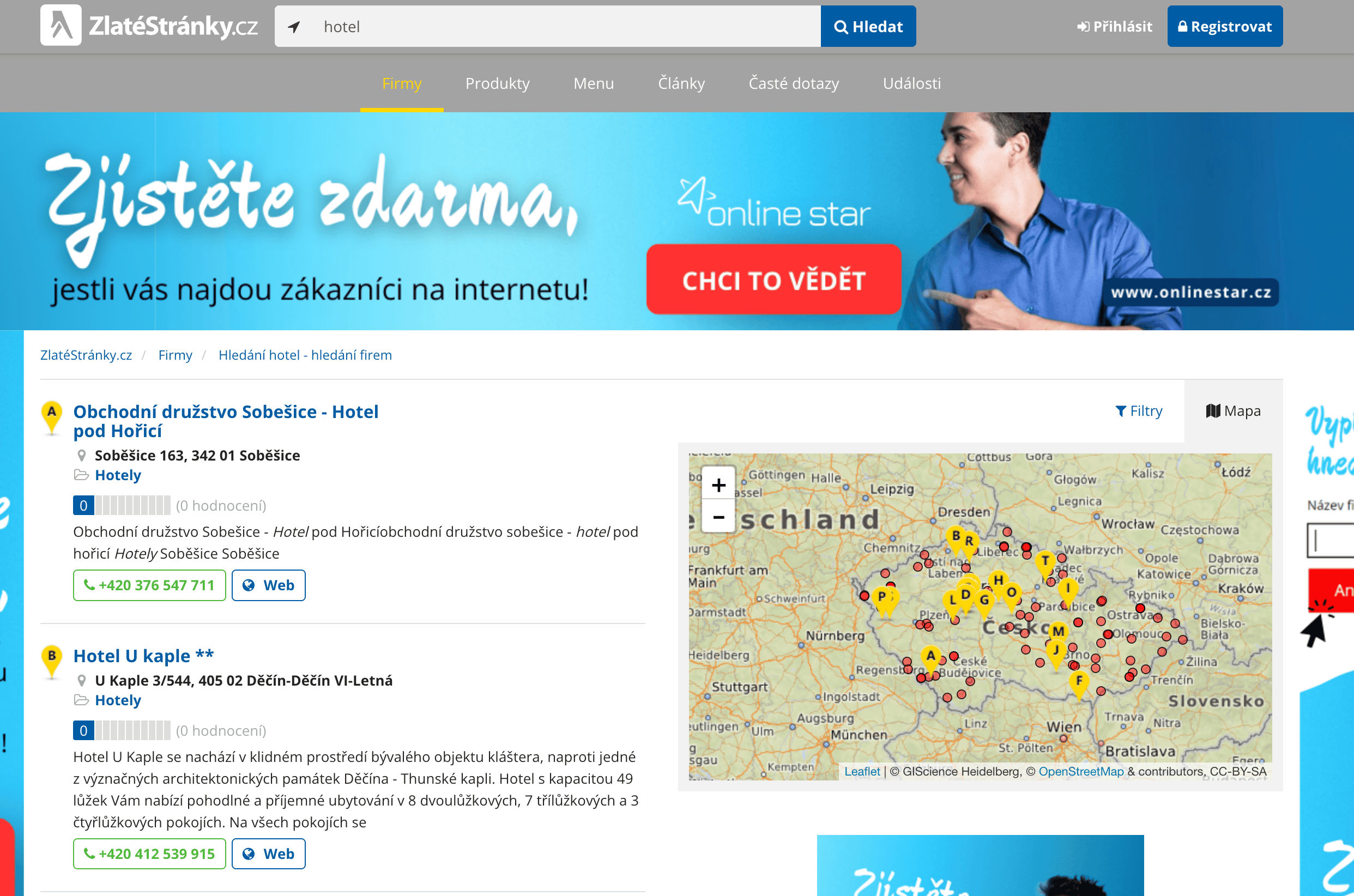 - Go to the destination page, for example: Zlaté stránky Business Search Result.
