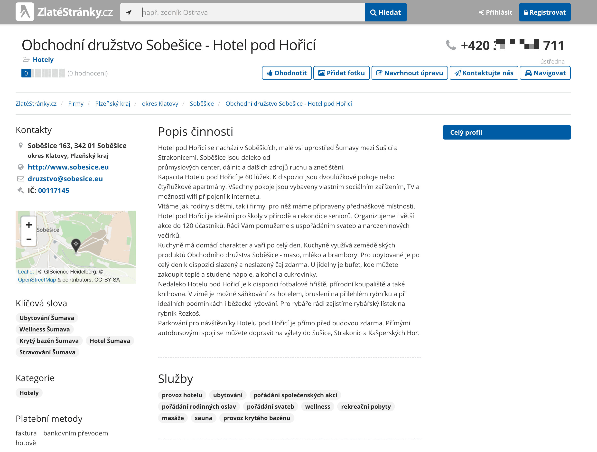 - Go to the destination page, for example: Zlaté stránky Business Details.