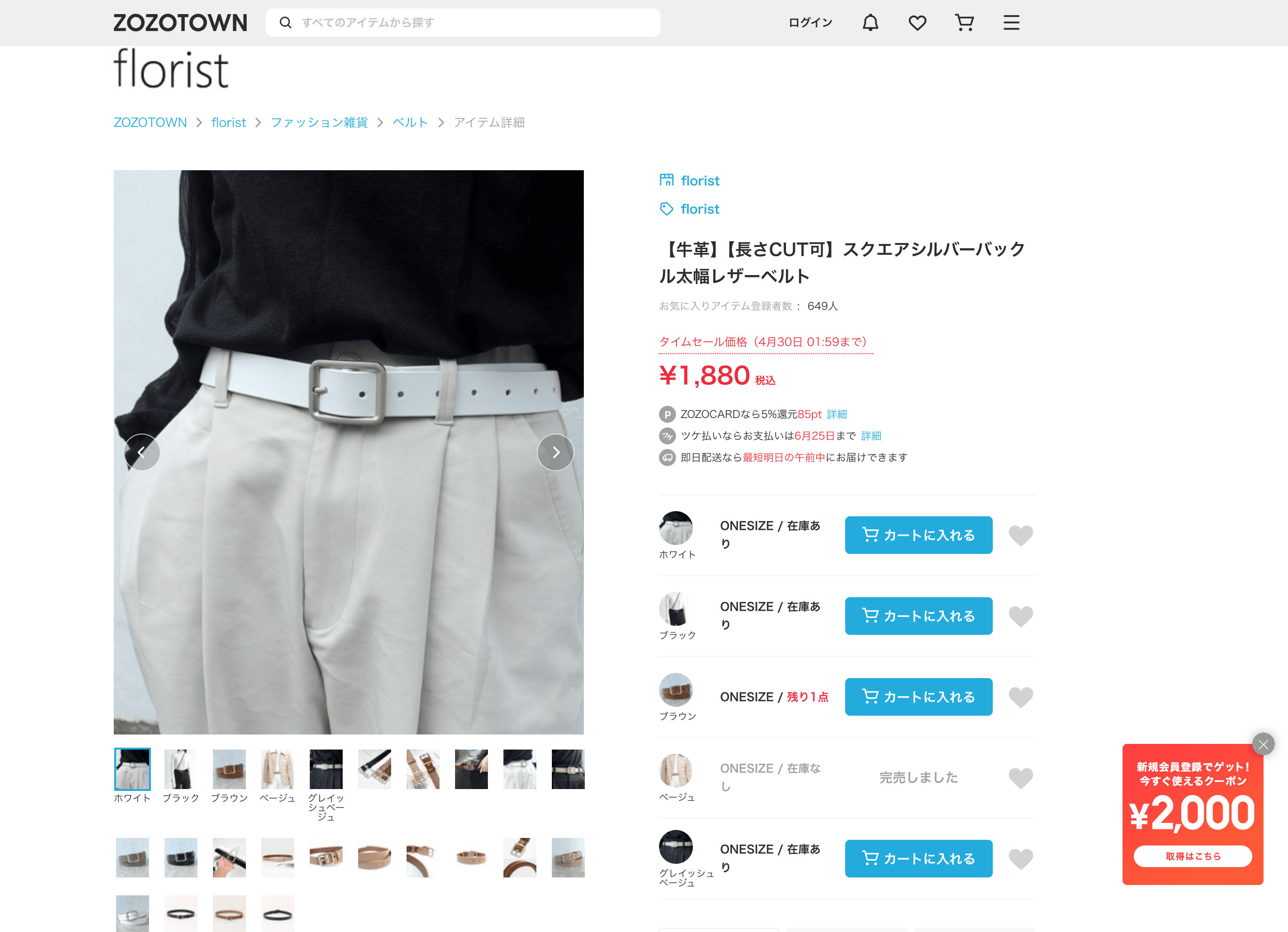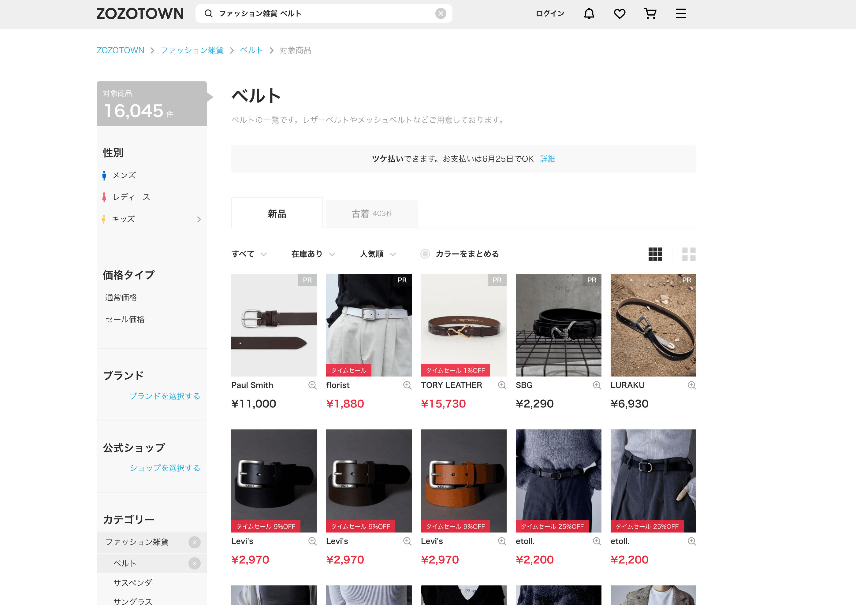 - Go to the destination page, for example: ZOZOTOWN Belt Category.
